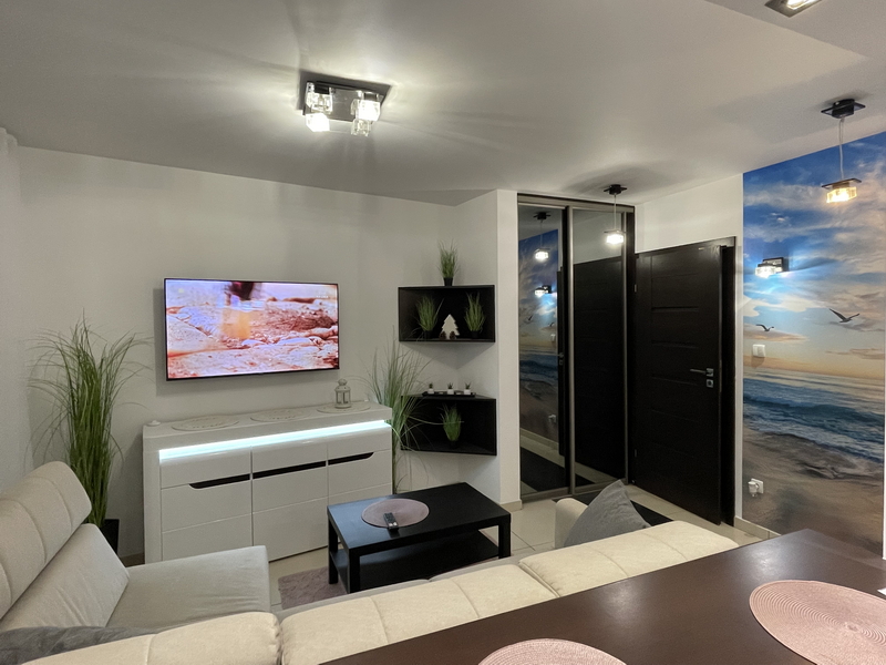Sleeping for 6 people: in the first bedroom a double bedroom bed, in the second bedroom a comfortable double sofa bed and in the living room a double sofa bed.