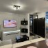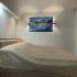 Living room: sofa bed, coffee table, chest of drawers, LCD TV, bedding,
